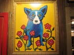 It just so happens, last summer on a marathon road trip through the South, I found myself in Lafayette, Louisiana, at the Blue Dog Cafe, George Rodrique’s stomping grounds. The Cajun influenced restaurant walls were covered with Blue Dogs and Rodrique’s Cajun landscapes. It was hard to tell if anyone was aware they were dining under world renowned art works. People in Lafayette are obviously accustomed to the Blue Dog. I was the only tourist running around the dining area trying to capture individual works on my little camera. Food, not art in the restaurant, was definitely the focus.