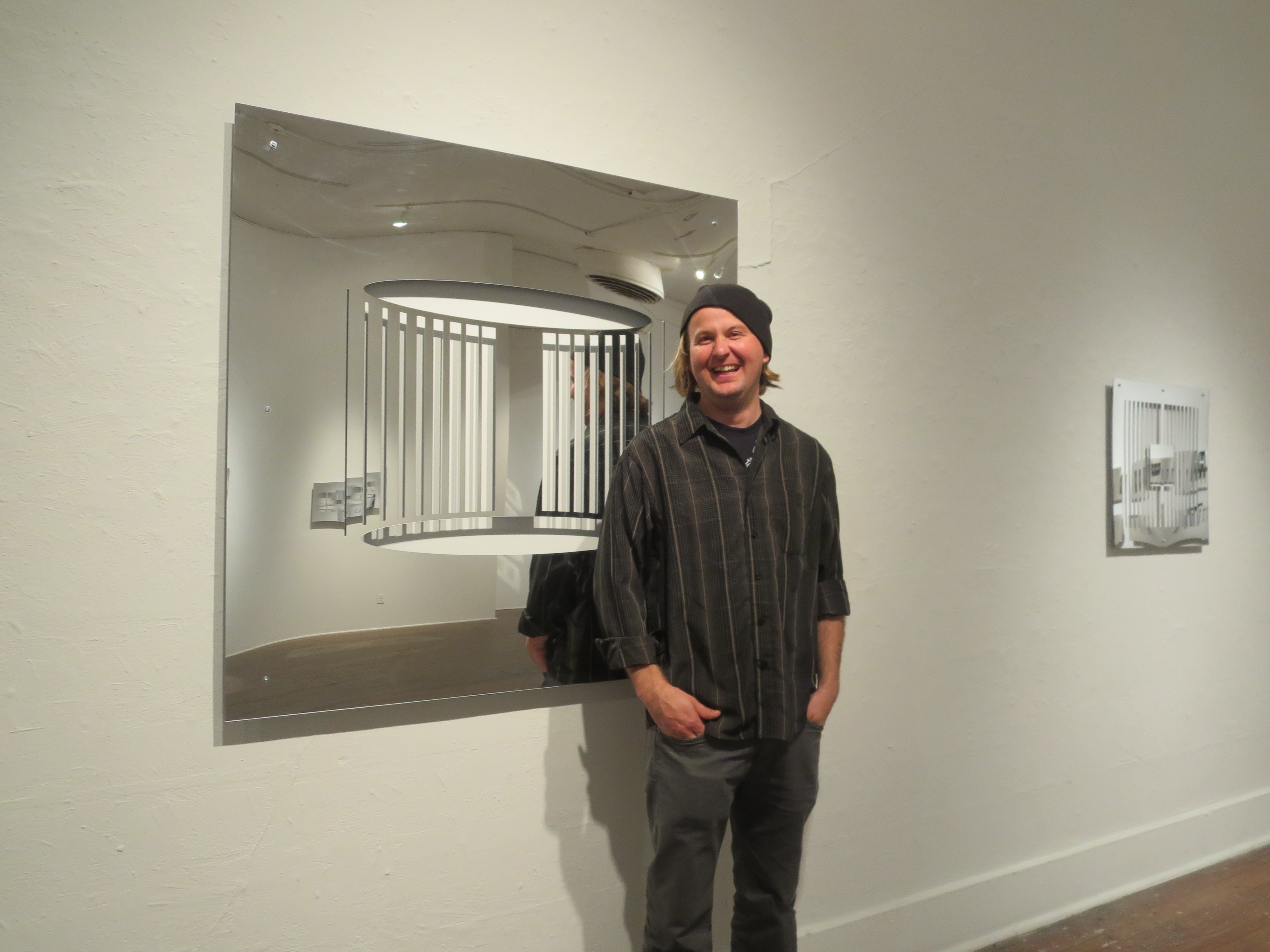Across the street at the legendary Pirate Contemporary Art gallery another chip-off-the-old-block is on the walls. His father, Chuck Parson, has been a well-known Colorado artist for the last 25+ years. Now we have the pleasure of his son, artist and likeable guy, Collin Parson. He’s a product of the latest wave of artists who know the inside of a computer. Collin says he’s an artist, but adds, his father is the real artist, one who can draw, paint, sculpt. I say Collin is cutting himself short. He is a genius. Imagine creating modern flowing, symmetrical designs on a computer screen then actually putting the design into real metal. The results are astonishing and quite beautiful. I see it in the lobby of buildings like – General Motors?